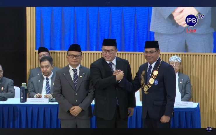 “…Dengan penuh rasa tanggung jawab, menjaga integritas…,” ulang rektor baru itu mengucap sumpah dibimbing Ketua Majelis Wali Amanat (MWA). Dr. Alim Setiawan Slamet, S.TP., M.Si., mantan Wakil Rektor bidang Resiliensi Sumberdaya dan Infrastruktur (WR II), per Kamis (11/12), resmi dilantik menjadi rektor IPB University pengganti antar waktu (PAW). Pengangkatan ini mengekor dari penunjukkan Prof. Dr. Arif Satria, S.P., M.Si., rektor pendahulu, sebagai kepala Badan Riset dan Inovasi Nasional (BRIN) baru di Istana. Dinamika ini menyisakan rentetan “pekerjaan rumah” bertenggat tahun 2028 (sesuai periode kepemimpinan) yang ditumpahkan MWA dan Arif pada penerusnya.