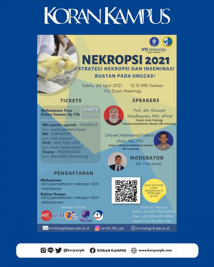 Media Partner [Media Partner] Webinar Nasional Nekropsi : Strategi Nekropsi dan IB pada Unggas (+3 SKBP) Marketing And Communication22 April 2021, 10:05Tambahkan Komentar729 kali dilihat1 menit membaca Marketing And Communication Tampilkan Semua [Media Partner] PPI Belanda Talks Workshop Coaching Menulis Berita Daring [Media Partner] HIFI : Open Registration Webinar dan Konseling